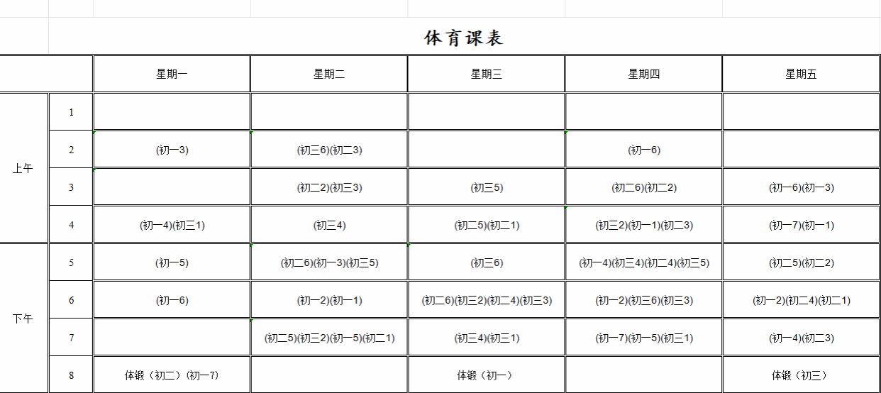 体育课表